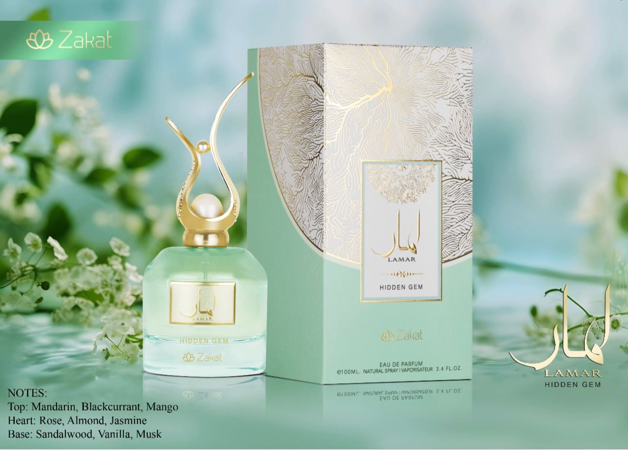 Lamar Hidden Gem by Zakat is a classic and refreshing scent with notes of citrus, florals, and woods. Features a blend of orange, mandarin orange, bergamot, jasmine, rose, patchouli, sandalwood, and vetiver for a well-rounded and timeless experience.