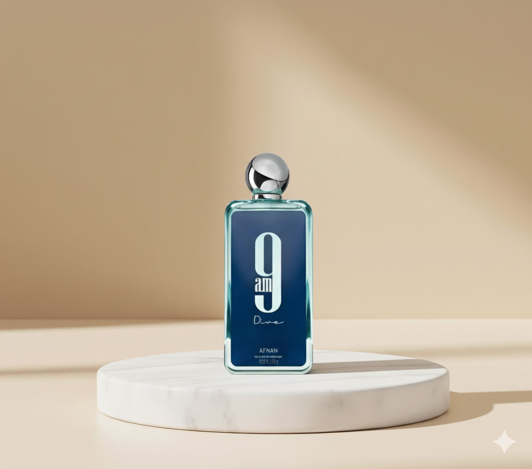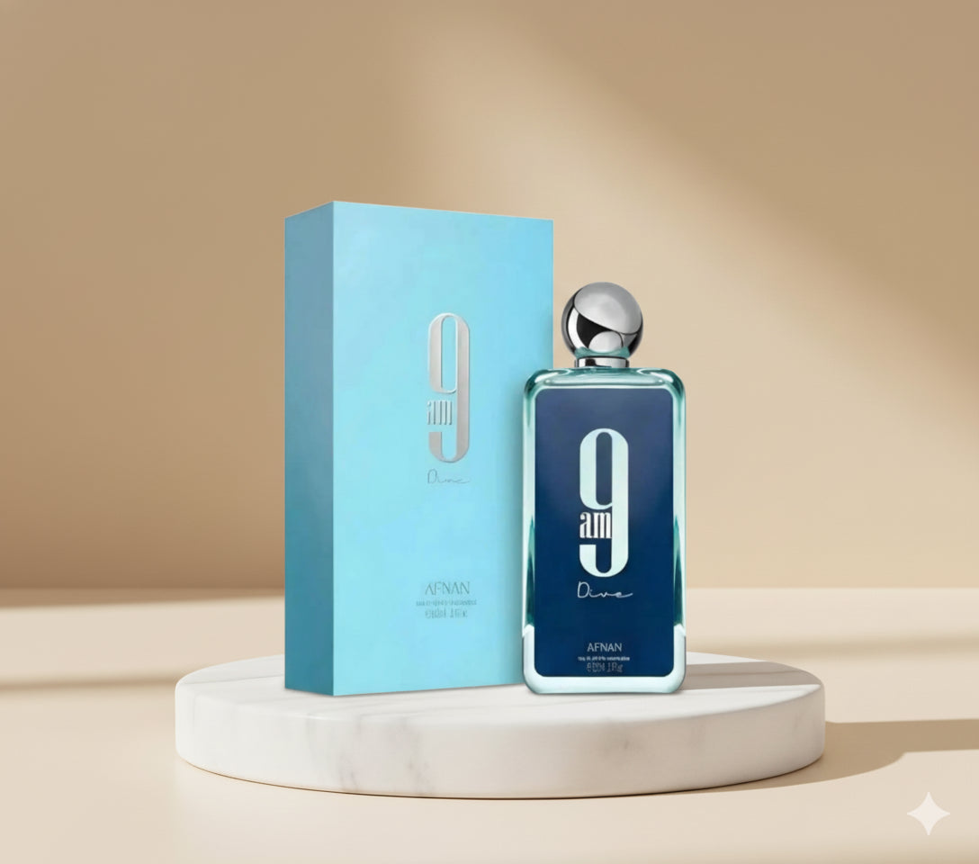 9AM Dive 3.4 EPD (BLUE) Â is a vibrant and sophisticated fragrance that balances fresh, spicy, and woody elements with a touch of mystery. It opens with a lively and invigorating energy, unfolding into a smooth and rich heart that feels both elegant and captivating. The scent settles into a warm, sensual base that lingers with depth and complexity, making it perfect for those who appreciate a bold yet refined aroma with an exotic.
